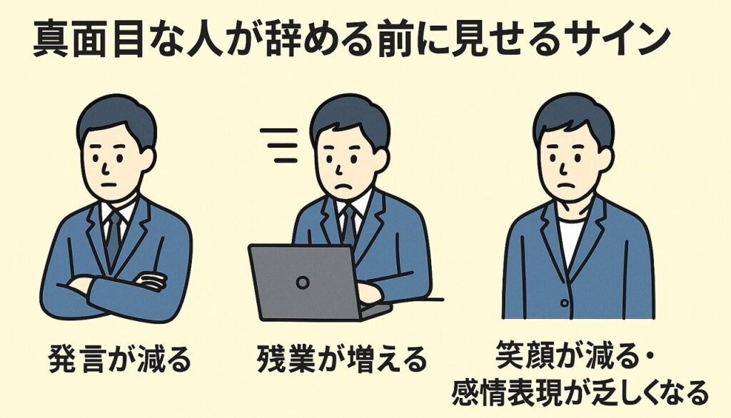 このような背景があるからこそ、「真面目な人が急に辞める」のは決して“本当に突然”ではなく、「積み重ねた我慢が限界に達した結果」なのです。